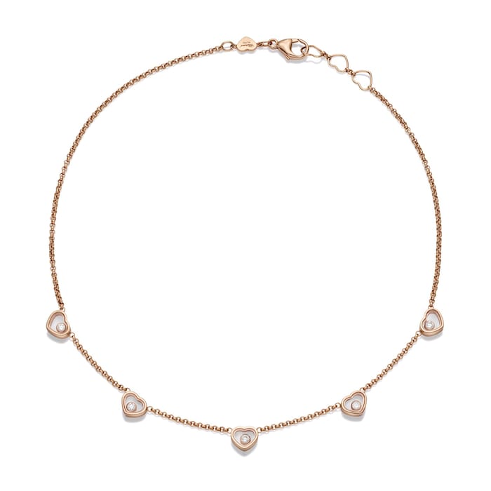 My Happy Hearts jewellery collection borrows its most famous codes, the heart and mobile diamonds, from Chopard's legendary creations. The heart motifs of My Happy Hearts diamond necklaces form a delicate constellation, to be worn alone or stacked as a stylish accessory. Me, Myself and My Happy Hearts.