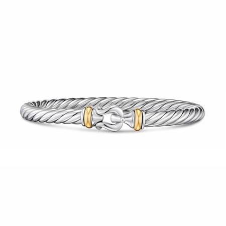 David Yurman Cable Flex Buckle Bracelet In Sterling Silver And 14ct Yellow Gold, 6mm - Size Large MPN: B18757 S4L