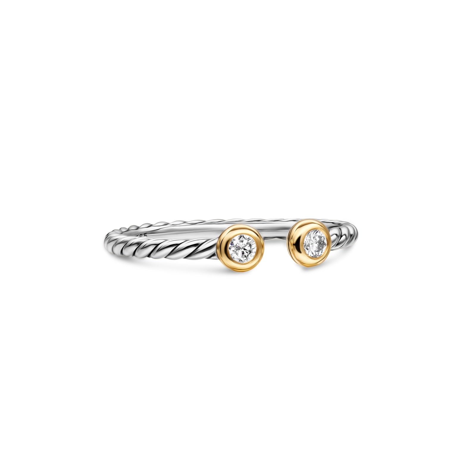 David Yurman Cable Open Round Ring In Sterling Silver With 14ct Yellow Gold And Diamonds, 3.9mm MPN: R18461DS4ADI