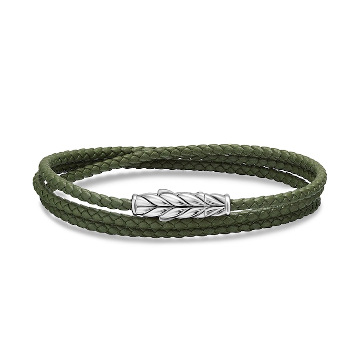 David Yurman Chevron Triple Wrap Bracelet In Green Leather With Sterling Silver, 3mm - Size Medium MPN: B35144MSSGNLEM