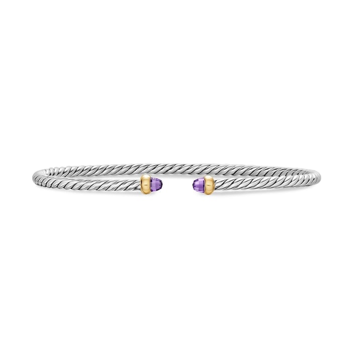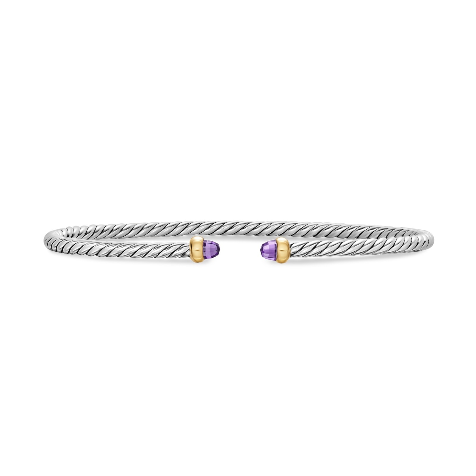 David Yurman Micro Cable Flex® Bracelet In Sterling Silver With 14ct Yellow Gold And Amethyst, 2.6mm MPN: B18857 S4AAM