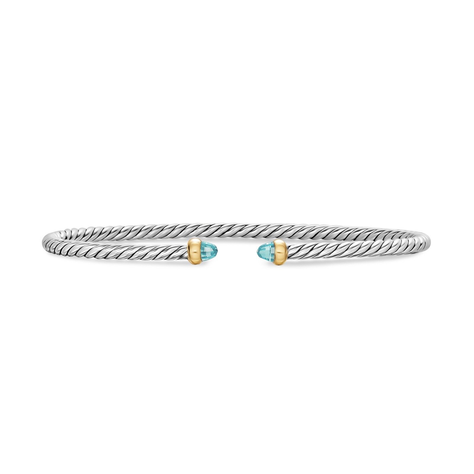 David Yurman Micro Cable Flex® Bracelet In Sterling Silver With 14ct Yellow Gold And Aquamarine, 2.6mm MPN: B18857 S4AAQ