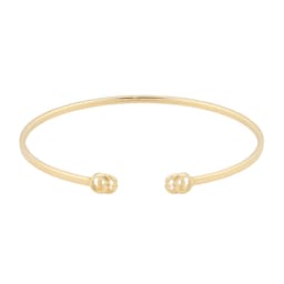 The Double G, inspired by an archival design from the '70s-a hallmark era of the House-is found at either end of a thin yellow gold cuff bracelet. The emblematic motif is encrusted with white diamonds. The thin design allows this style to be worn stacked with other bracelets in the collection.