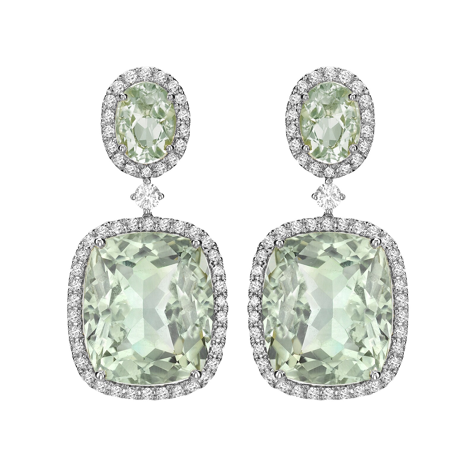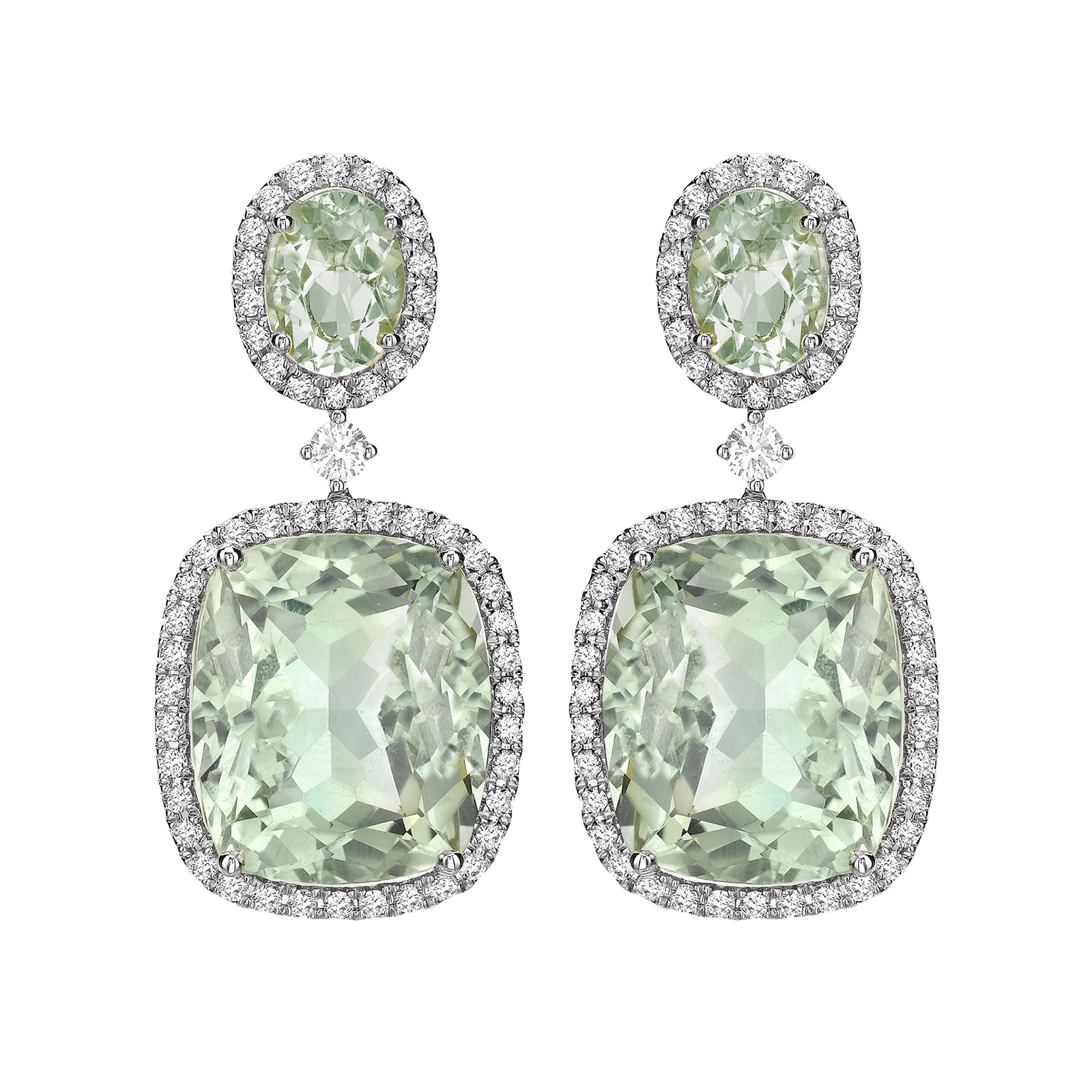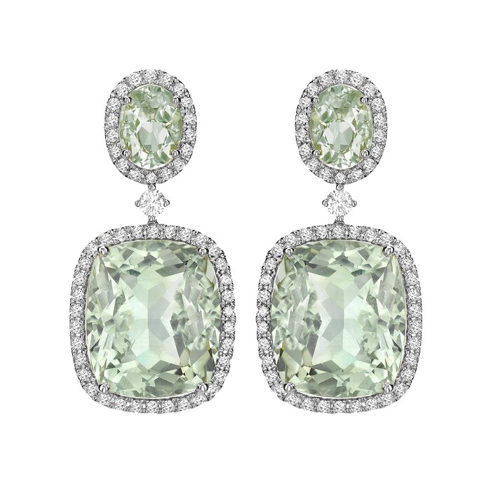 Kiki McDonough 18ct White Gold 0.78ct Diamond & Green Amethyst Drop Earrings MPN: ERDGM1224