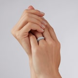 Express the everlasting nature of your commitment with this stunning platinum triple row eternity ring. Sparkling with three rows of brilliant cut diamonds for a total weight of 1.0ct, this ring is a symbol of your unwavering love and devotion.