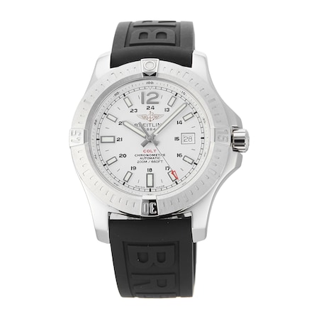 This Pre-Owned Breitling Colt Chronomat Mens Watch A1738811/G791 features a 44mm (approximate size) stainless steel case fitted with a silver dial, sapphire crystal glass, and a date complication.