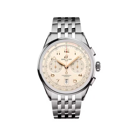 Pre-Owned Breitling Premier B01 Chronograph 42mm Automatic Mens Watch Cream Stainless Steel MPN: AB0145211G1A1