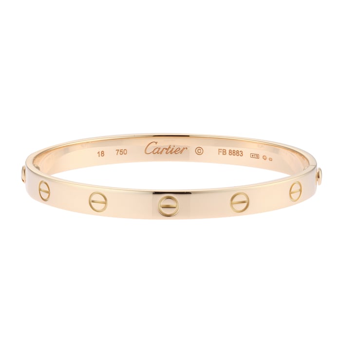 This beautiful Pre-Owned Cartier Love Bracelet is crafted in 18ct yellow gold and forms part of the iconic Love collection. It is finished with a single screw and hinge fitting. Sized at 18, with a gross weight of 35.00 grams.