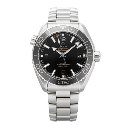 This Pre-Owned Omega Seamaster Planet Ocean 600M Mens Watch 215.30.44.21.01.001 features a 43.5mm stainless steel case fitted with a black dial, sapphire crystal glass, and a date complication.