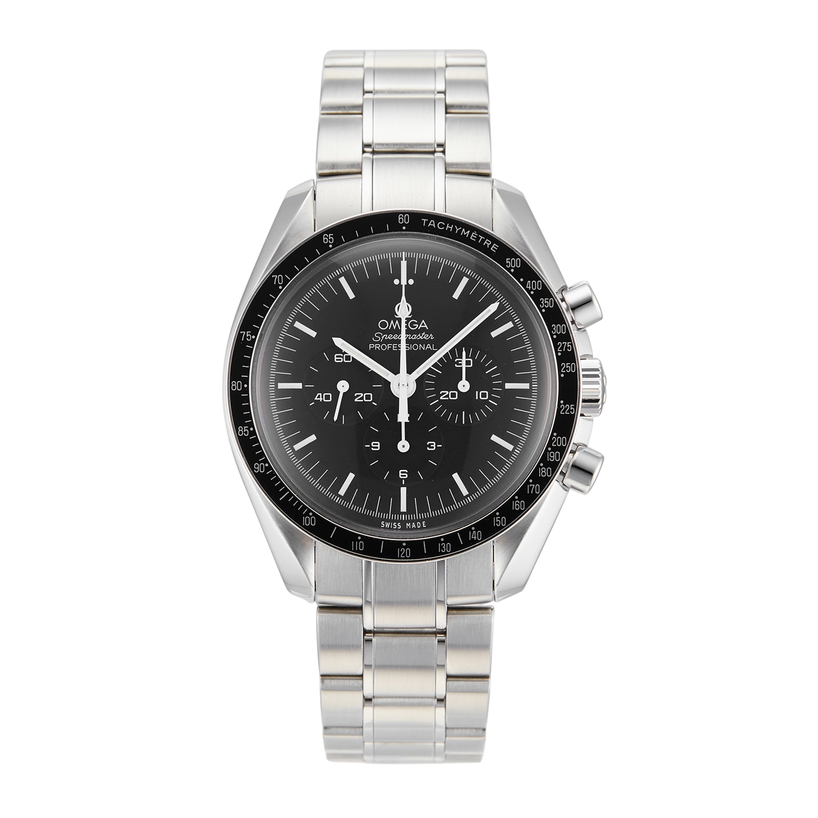 This Pre-Owned Omega Speedmaster Moonwatch Professional 42 Men's Watch 311.30.42.30.01.005 features a 42mm stainless steel case fitted with a black dial and hesalite crystal glass, and a chronograph complication.