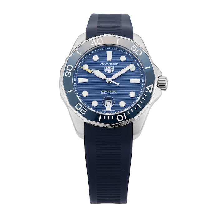 TAG Heuer watches exude style, class, and iconic reliability. TAG Heuer has become a hallmark for quality and a recognised symbol of success. Step out of your comfort zone and purchase a piece of innovative craftsmanship. Their mens and womens watches continue to revolutionise timekeeping as we know it, keeping TAG at the forefront of the watchmaking industry. The reliability and durability of TAG Heuer watches are notable, while the class and elegance of the brand is something that cannot be overlooked. Whether you have a preference for functionality or style, TAG watches have it all. This Pre-Owned TAG Heuer Aquaracer Professional 300 Date 43mm Stainless Steel WBP201B.FT6198 features a 43mm stainless steel case, showcasing a blue dial and sapphire crystal glass. Powered by an automatic movement, this impressive watch also showcases a rubber strap finished with a deployment clasp for added security. This watch is also water resistant to 300 metres.