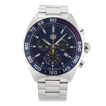 This Pre-Owned TAG Heuer Formula 1 Aston Martin Red Bull Racing Special Edition Mens Watch CAZ101AB.BA0842 features a 43mm stainless steel case fitted with a blue dial, sapphire crystal glass, a date and a chronograph complication.