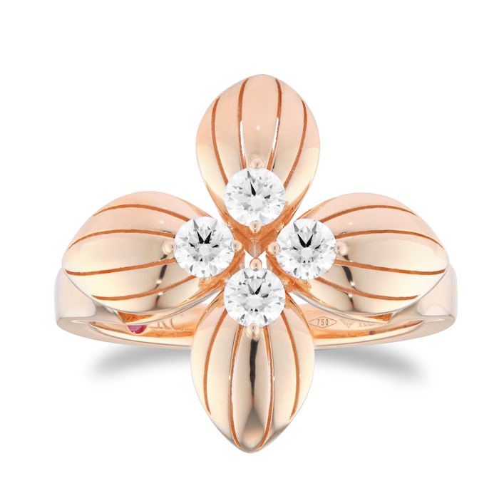 Diamonds are the star of this beautiful ring by Roberto Coin, featuring 18ct rose gold and the uniqueness of a handmade jewel.