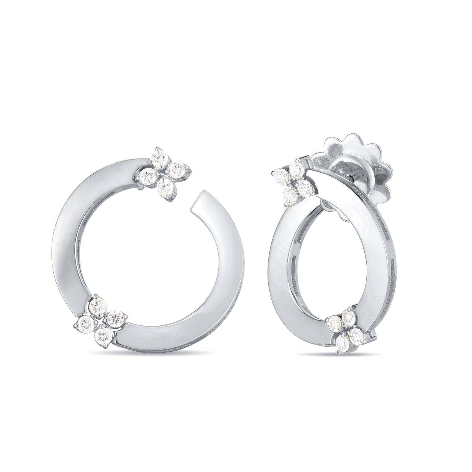 Diamonds illuminate these trendy earrings by Roberto Coin featuring 18ct white gold and the uniqueness of a handmade jewel.