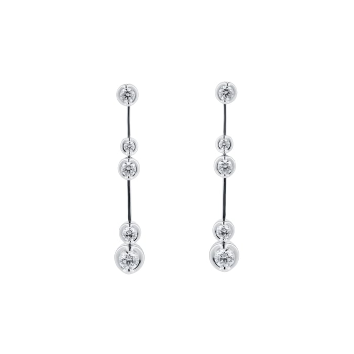- Drop earrings in 18ct white gold with bezel-set round brilliant cut diamonds